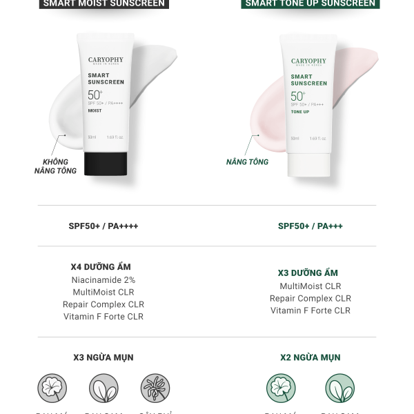 Kem chống nắng thông minh Caryophy Smart Sunscreen Tone Up 50ml